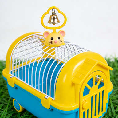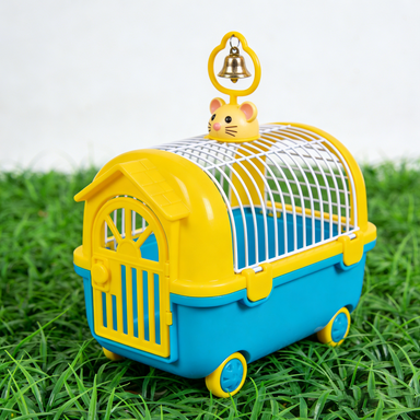 Ut ostenditur in cavea caeruleo-flava imago, specie ad parvas curas destinata, mus capitis ornamentum et campanam auream format. Tutus pretium $12-15/unitas (ex MOQ), ordo minimum 100 unitates, functionem cssuram et labellam privatam sustinens.
